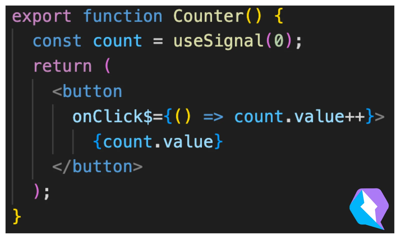 Para comparar, aquí está el mismo ejemplo en Qwik. Observa que (getter/setter) ha sido reemplazado por un único objeto con una propiedad